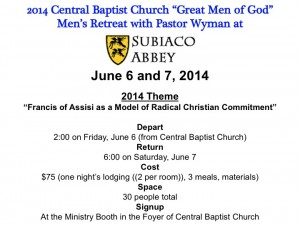 This retreat will mark the first annual Pastor-led “Great Men of God” Men’s Retreat at Central Baptist Church. Each year we will consider the life of a great figure from Christian history and how that life can encourage us as we seek to walk more closely with Jesus. The historical figures we will be considering will serve as springboards off of which we will jump into an intentional consideration of the Christian life in the modern world.