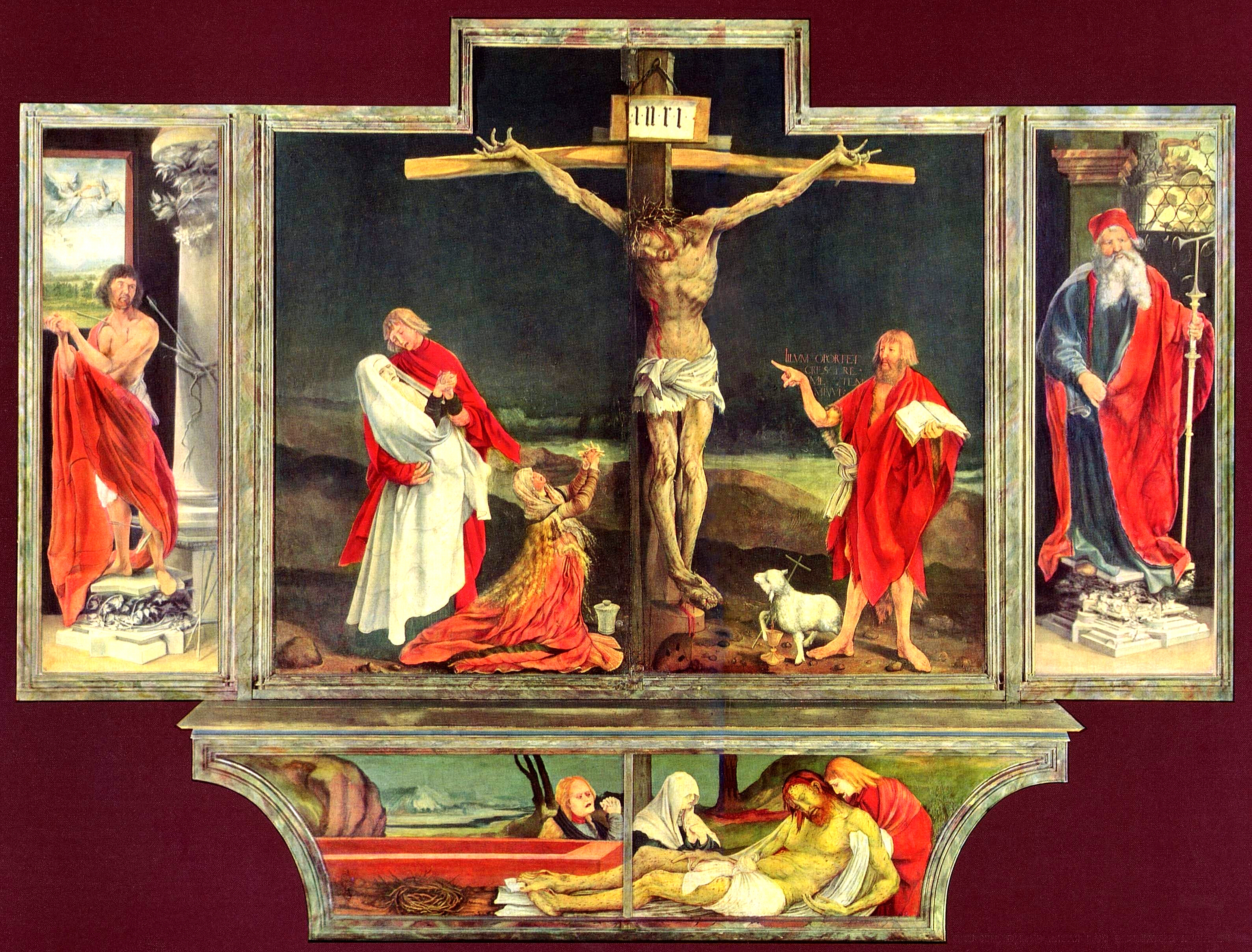 You can see the crucifixion scene prominently displayed here in the centerpiece, but when you come in close to John the Baptist you can also see an interesting detail that Grunewald added. The words above John the Baptist’s arm are, “Illum oportet crescere, me autem minui.” That is Latin for, “He must increase, but I must decrease.” These are the words of John the Baptist in response to the news that Jesus’ ministry and fame was expanding greater than John’s own. Instead of responding with jealousy or scorn, John famously said, “He must increase, but I must decrease.”
