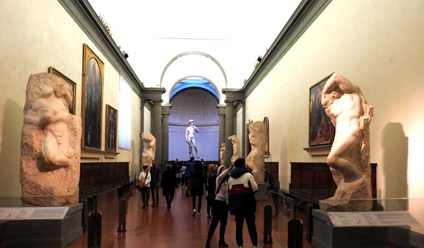 So the visitor to the Accademia Gallery in Florence walks down this amazing hallway studying these half-formed prisoners. But, at the end of the Hall of Prisoners, under the great dome of the Tribune, stands David: free, majestic, complete, seemingly perfect.