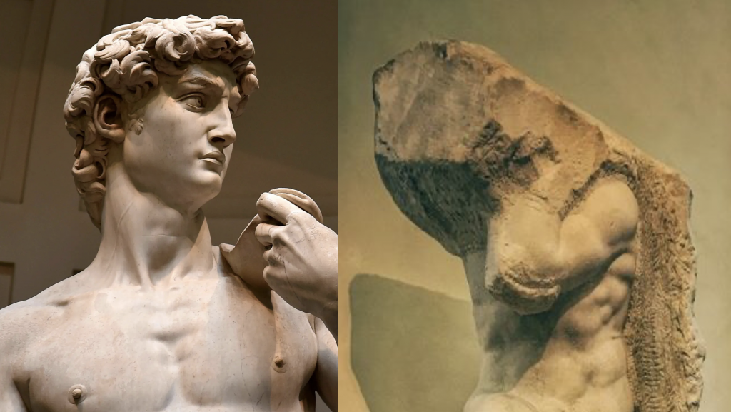 We want to be David, but we feel that we are half-formed blocks of marble.