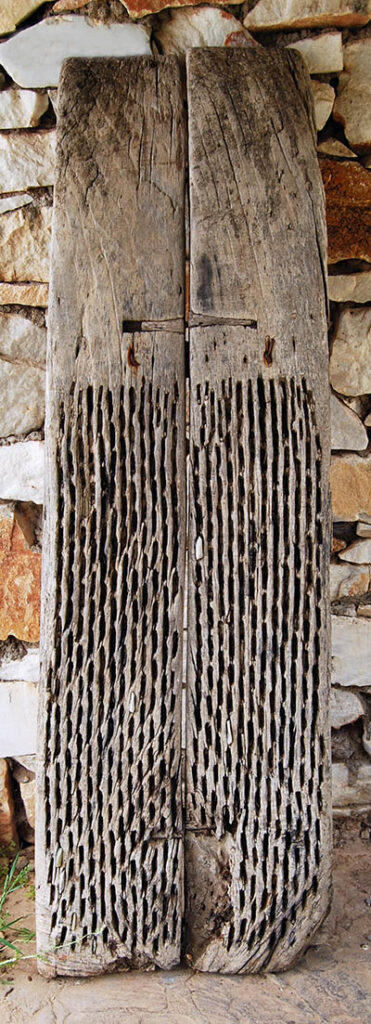 A “threshing sledge” was a board with metal (in this case iron) or other sharp objects that would be drug over grain to separate it from straw.