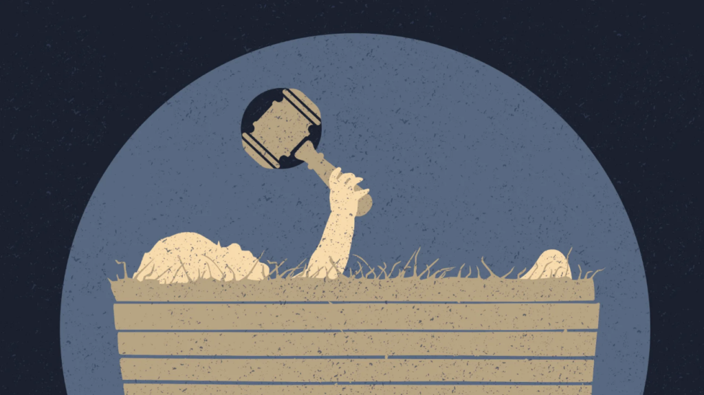 To these, the second coming reminds us that while Jesus first came lowly in the manger, He will return in unveiled power and mete out justice upon the earth in His second coming. There is a beautiful and powerful image that one of the designers of Christianity Today put above one of their articles a couple of years ago. It is a silhouette of the baby Jesus in the manger. His right hand is extended above the hay in the manger. There is something in the baby’s hand. What is it? It is a judge’s gavel.[5]
